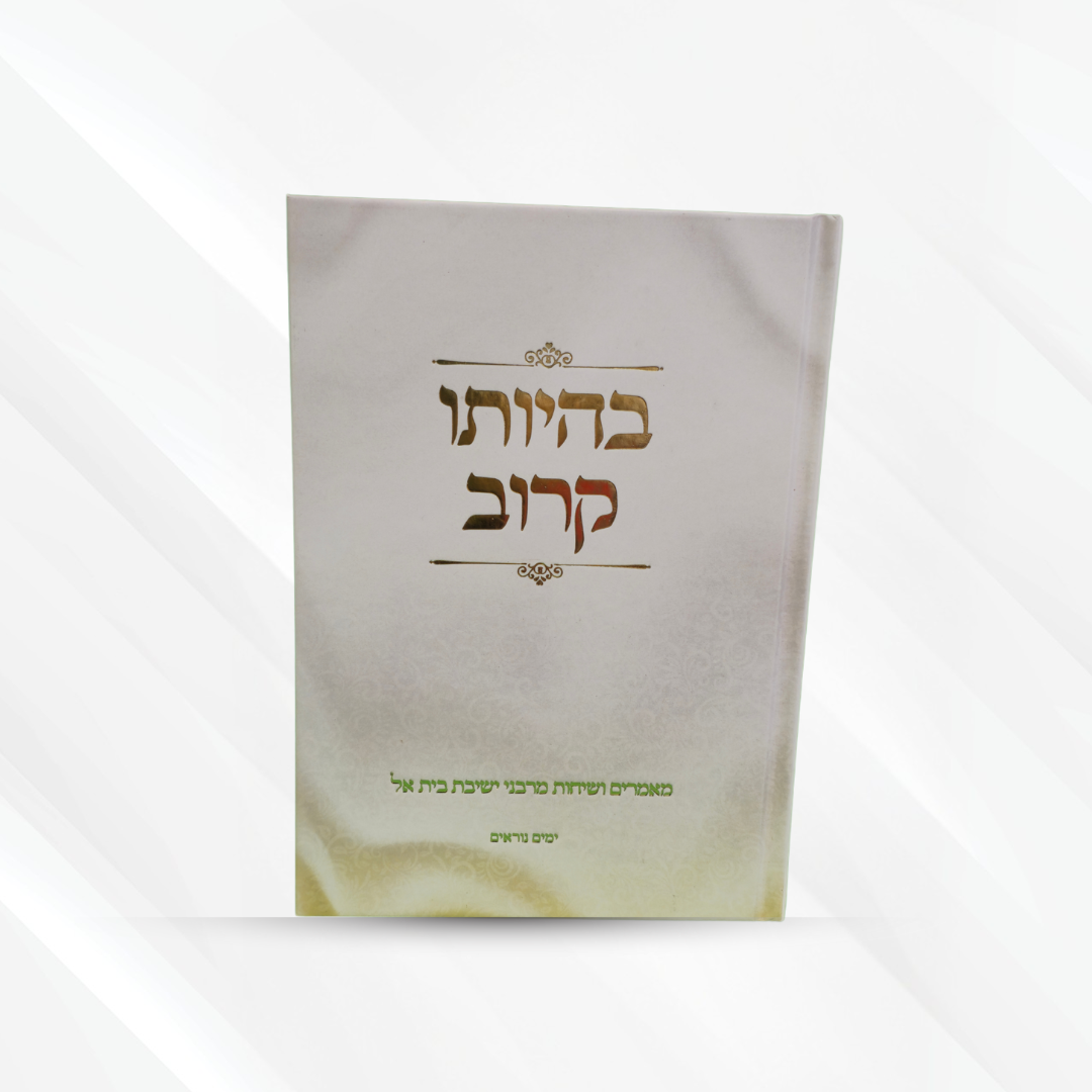 אסופת המאמרים בספר "בהיותו קרוב" מזמינה את הקוראים לצלול לעומק מהותם של הימים הנוראים. הספר הינו אוצר של מחשבה והגות ועוסקת במהותם של הימים הנוראים ובמרכזיותם בחי האדם מישראל. זוהי קריאה פנימית, חיה ונוגעת ללב. הספר כולל מאמרים ושיחות מרבני הישיבה הגבוהה בבית אל, אשר מעניקים זוויות עומק חדשות לשאלות העומדות בלב תקופת הסליחה והרחמים. "בהיותו קרוב" מאגד אנשי תורה ורוח מהשורה הראשונה בדורנו הדנים במשמעות הרוחנית של חודש אלול, ראש השנה, יום כיפור ועד חג הסוכות.